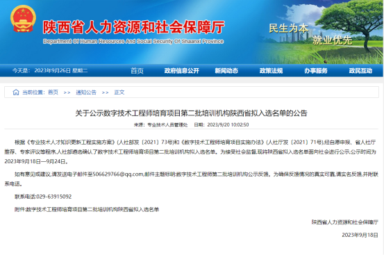 按照人社部发布的《关于开展数字技术工程师培育项目第二批培训机构和评价机构遴选工作的通知》要求,由米兰官网牵头,联合计算机学院、电子工程学院、理学院,主动作为、积极申报,组织力量深入调研,整合资源,精心准备申报材料,最终经陕西省人社厅推荐,通过专家评议,遴选入围。