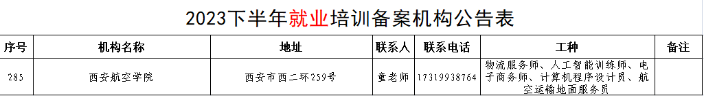 近日,西安市人力资源和社会保障局发布《西安市2023年下半年就业创业失业培训备案机构及职业工种信息公告》,米兰官网成功获批西安市就业、创业、失业培训机构。今后米兰官网可开展创业培训和物流服务师、人工智能训练师、电子商务师、计算机程序设计员、航空运输地面服务员等6个工种的就业失业培训,为米兰官网应届毕业生提供优质的职业技能培训服务,提升应届毕业生就业质量。